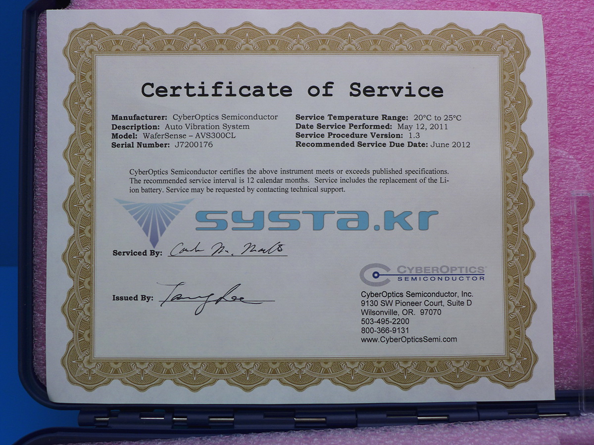 WaferSense , AVS , Wireless Auto Vibration System, 300mm, Lite, AVS300CL MAKER : CYBEROPTICS SEMICONDUCTOR SN : J7200176