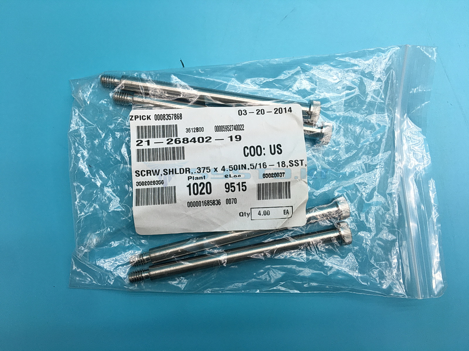 SCRW, SHLDR,. 375 X 4.50IN, 5/16-18, SST