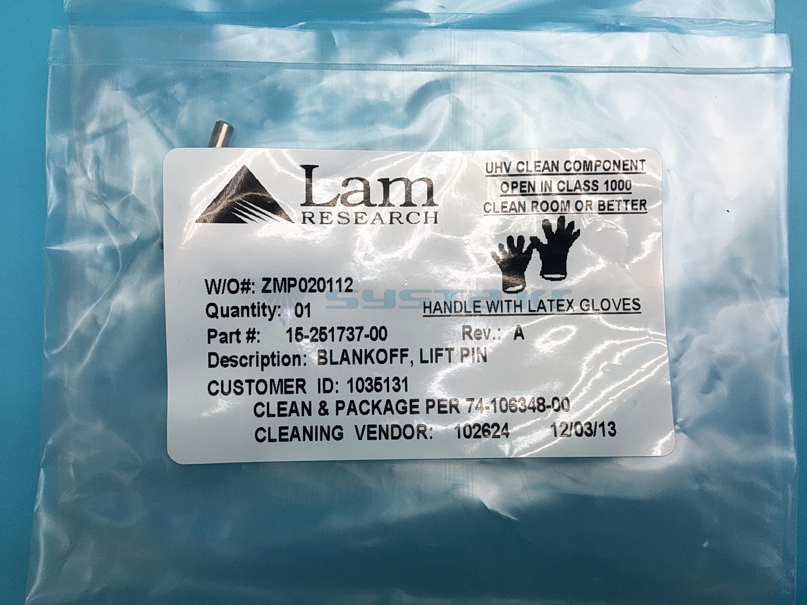 LIFT PIN, C3 ALTUS with BLANK-OFF