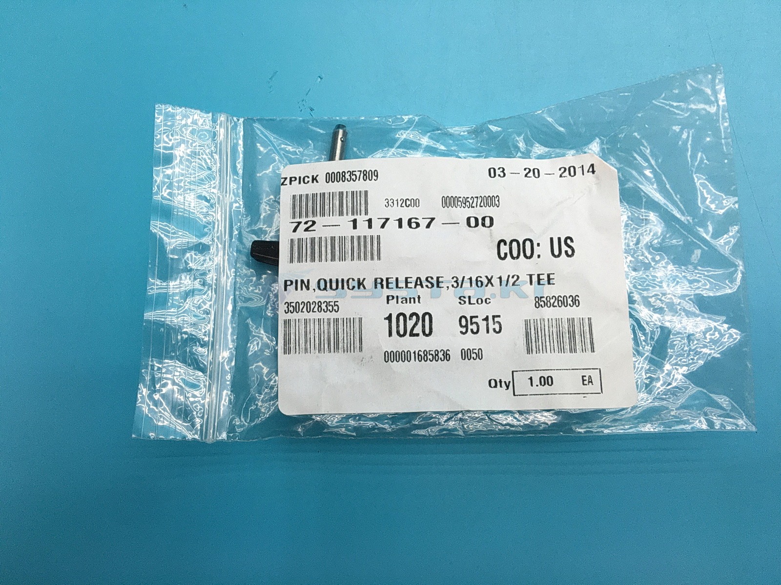 PIN, QUICK RELEASE, 3/16X1/2 TEE