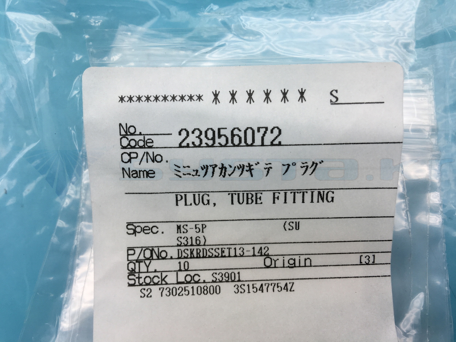 PLUG TUBE FITTING MS-5P SUS316