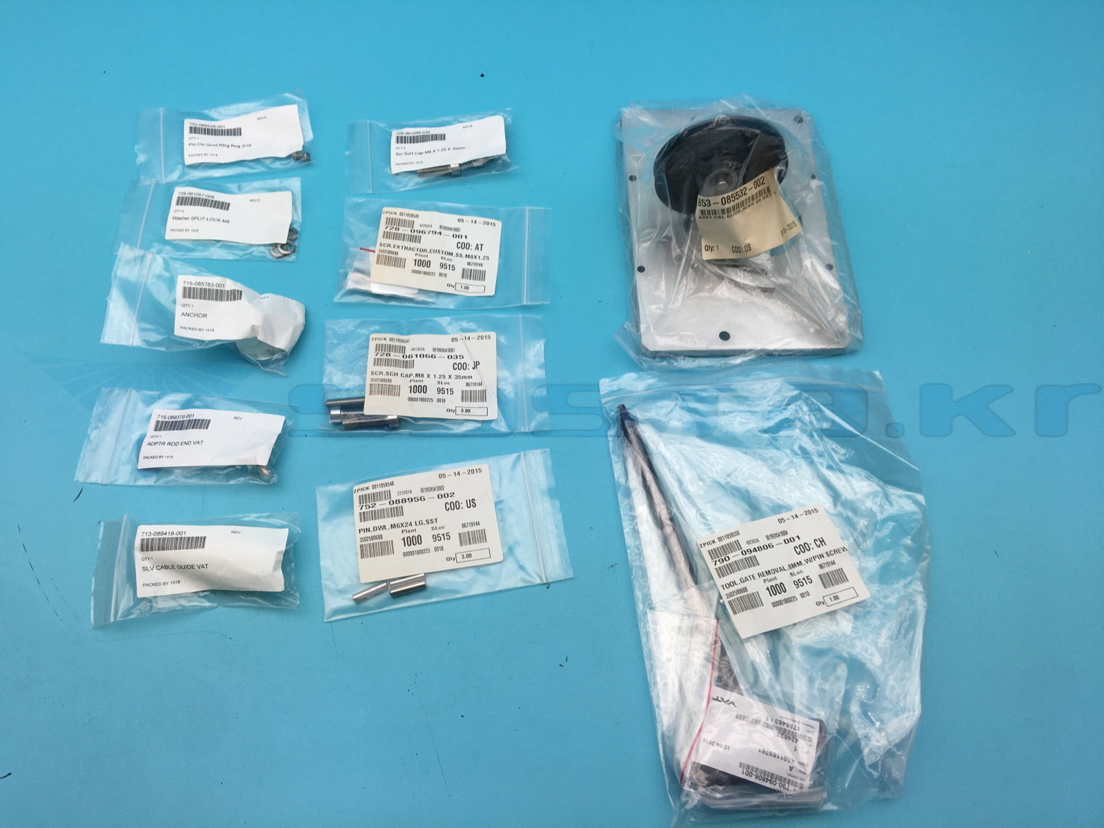 KIT SERVICE ROCKER VALVE 2300E , 853-085532-002 ASSY CLB GUIDE RCKR OR VAT VLV / 1EA, 853-085532-002 HARDWARE KIT / 1EA, 790-094806-001 TOOL GATE REMOVAL 8MM W/PIN SCREW / 1EA, 728-096794-001 SCR EXTRACTOR CUSTOM SS M8X1.25 / 1EA, 728-061066-035 SCR SCH CAP M8 X 1.25 X35MM / 3EA, 752-088956-002 PIN DWK M6X24 LG SST / 3EA, 715-085783-001 ANCHOR / 1EA, 728-061066-030 SCR SCH CAP M8X 1.25X 30MM / 4EA, 715-089379-001 ADPTR ROD END VAT / 1EA, 729-061057-008 WASHER SPLIT-LOCK M8 / 4EA, 752-089528-001 PIN CLV GRVD RNG 3/16 / 1EA, 713-089418-001 SLV CABLE GUIDE VAT / 1EA