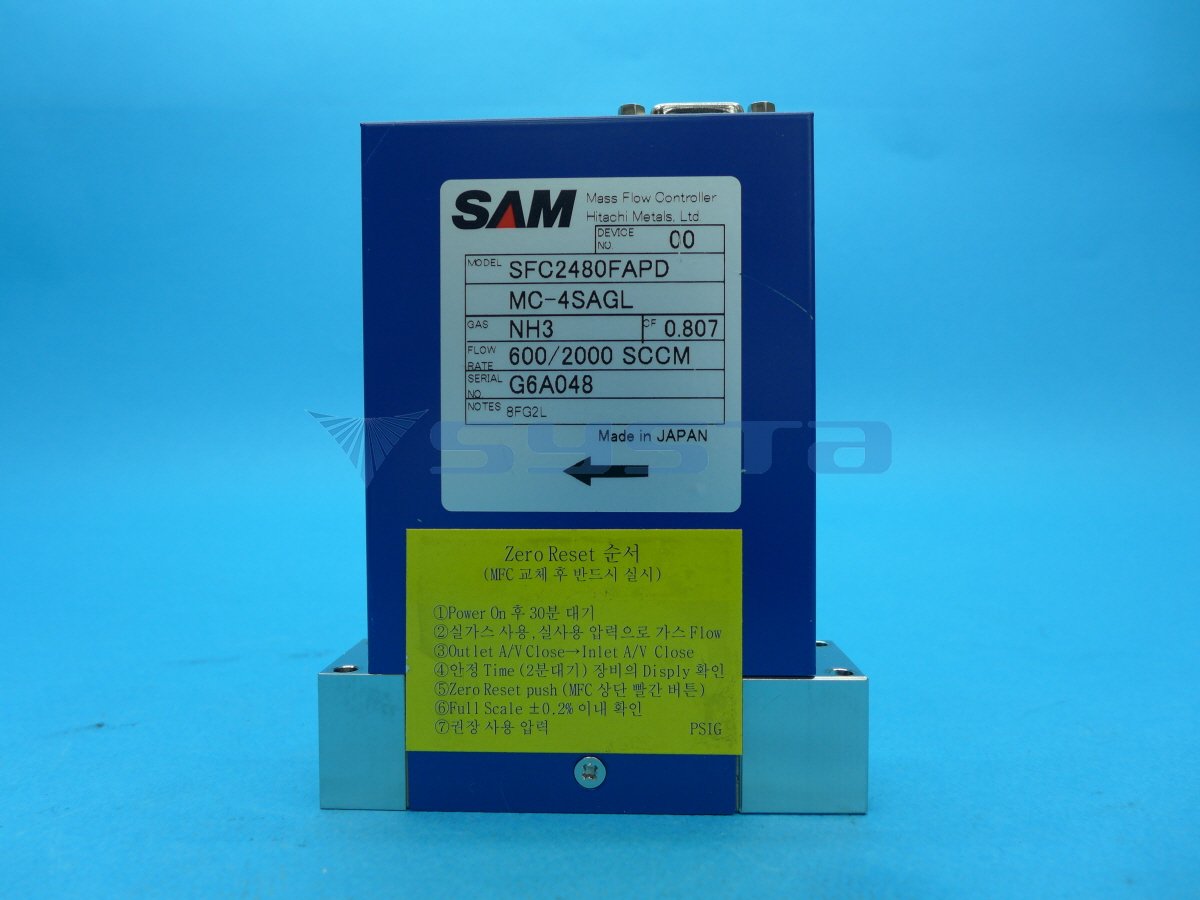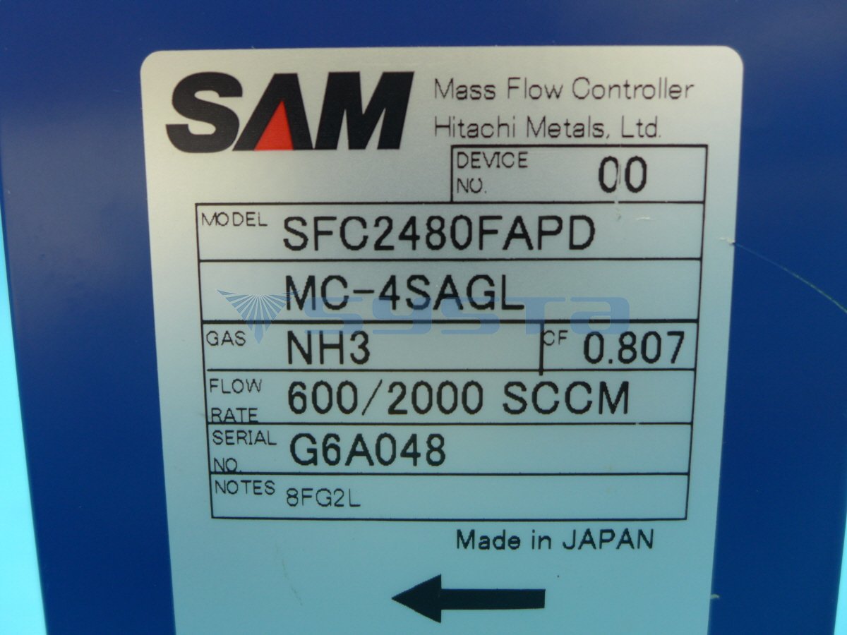 SAM SFC-2480FAPD, MC-4SAGL, MFC , Gas : NH3 , Flow Rate : 600 / 2000 Sccm , Made in JAPAN , , Net dimensions and weight , 100*30*150mm / 1 Kg